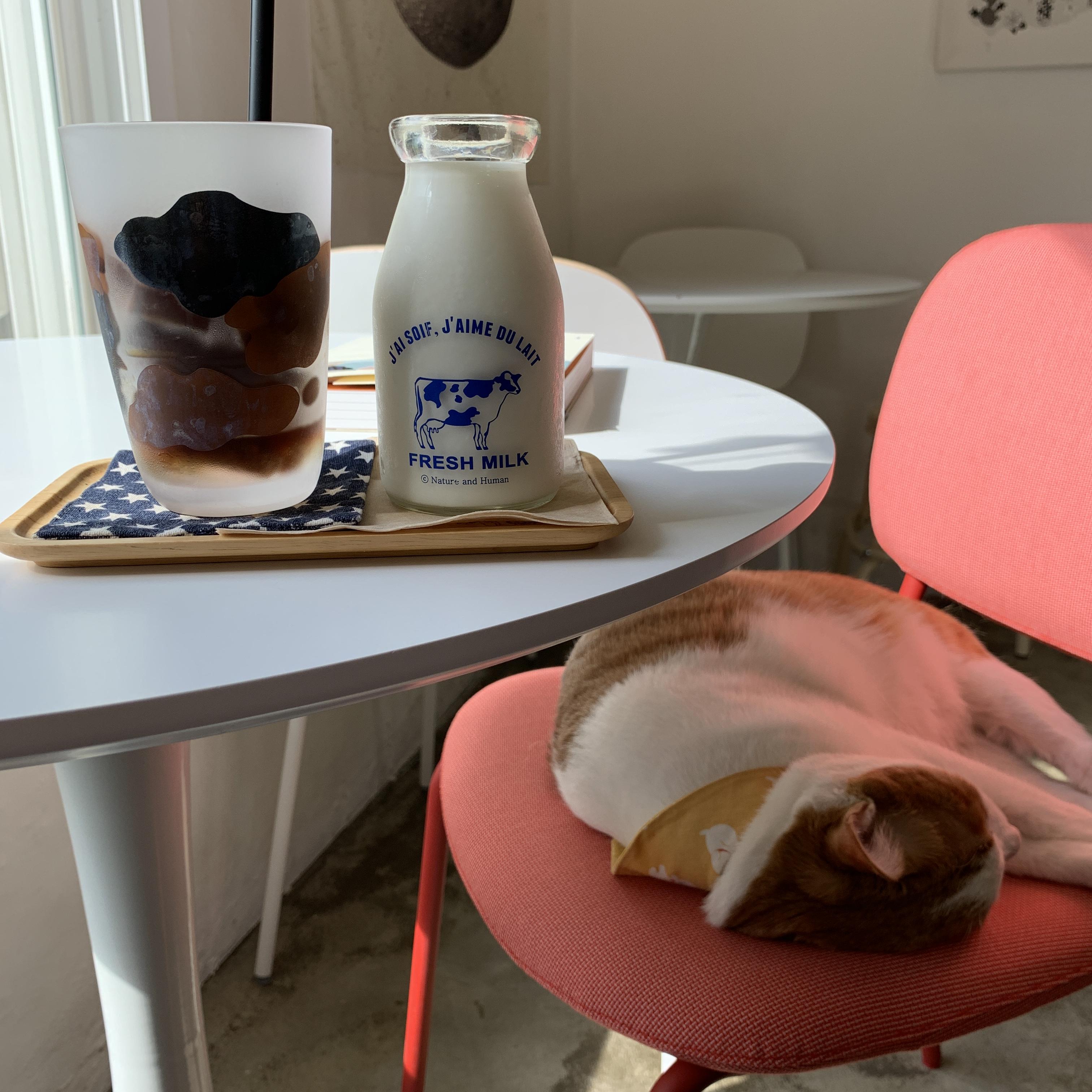 시럽이 깔려있는 얼음 위에 우유를 부으니 달달한 라떼 한잔이 완성되었다.