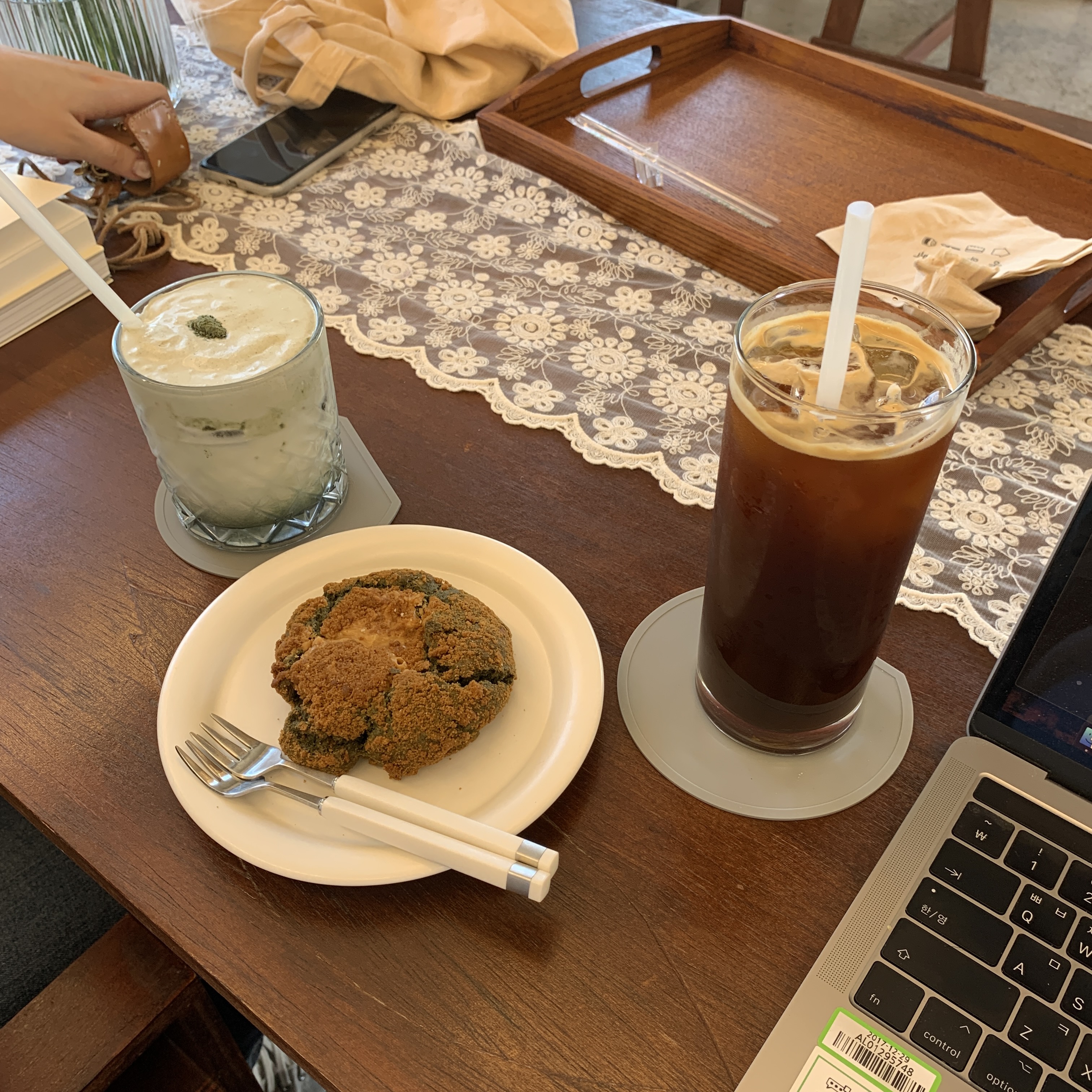 쑥쑥크림라떼와 아메리카노, 그리고 쑥과 땅콩크림이 들어간 쿠키를 주문했다.